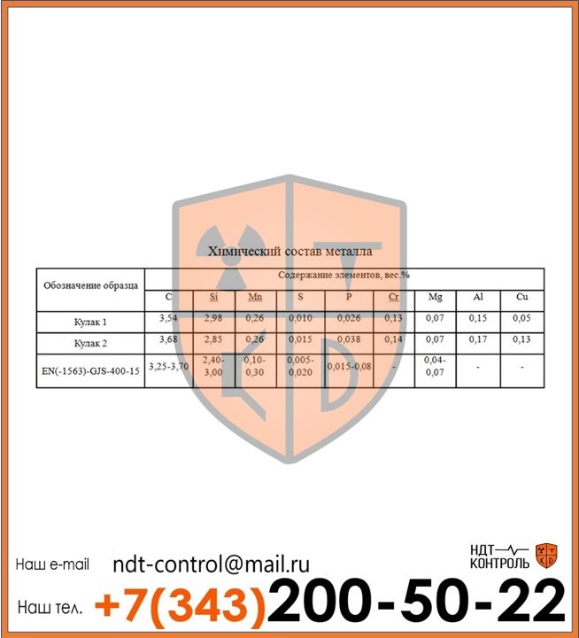 Лаборатория неразрушающего контроля «НДТ-контроль» проводит эффективный анализ состава металла в Краснотурьинске. Предприятие располагает всем необходимым для высокоточного определения химического состава, количественного содержания и качественных свойств веществ, примесей и элементов, содержащихся в металлических сплавах и сталях. Эксперты компании гарантируют полный контроль над качеством металлических изделий, а также детальную экспертизу состава металла. Диагностика методами неразрушающего контроля позволяет не только вынести заключение о качестве, составе и свойствах металлов, но выявить причины появления дефектов или неисправностей на металлических конструкциях и изделиях из стали. Узнать подробную информацию о методах НК, стоимость анализа химического состава металлов, а также перечень услуг, предоставляемых лабораторией «НДТ-контроль» можно узнать на сайте, или у консультантов компании по указанным в разделе «Контакты» телефонам.